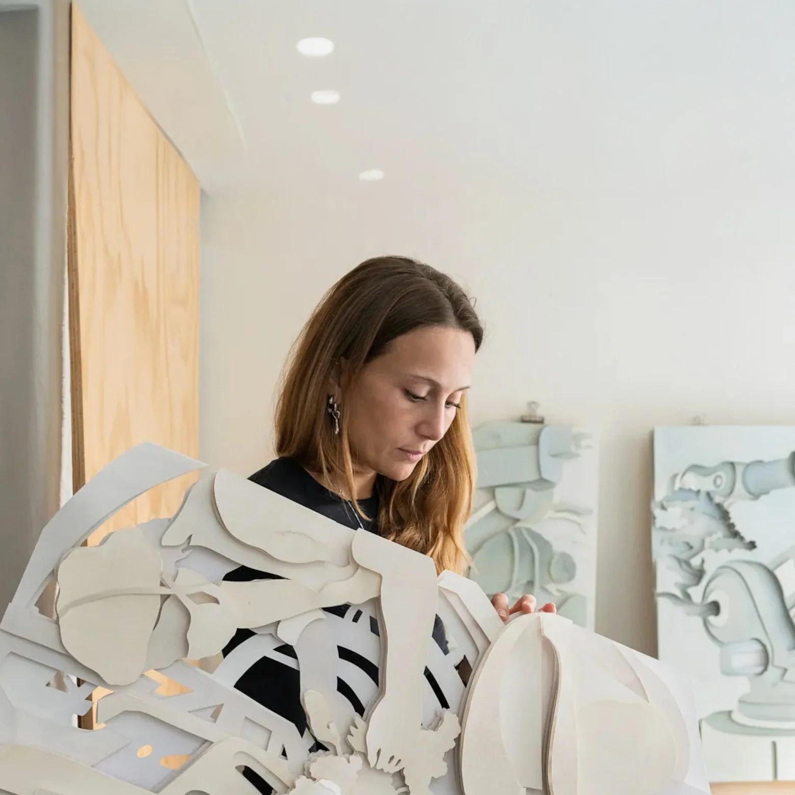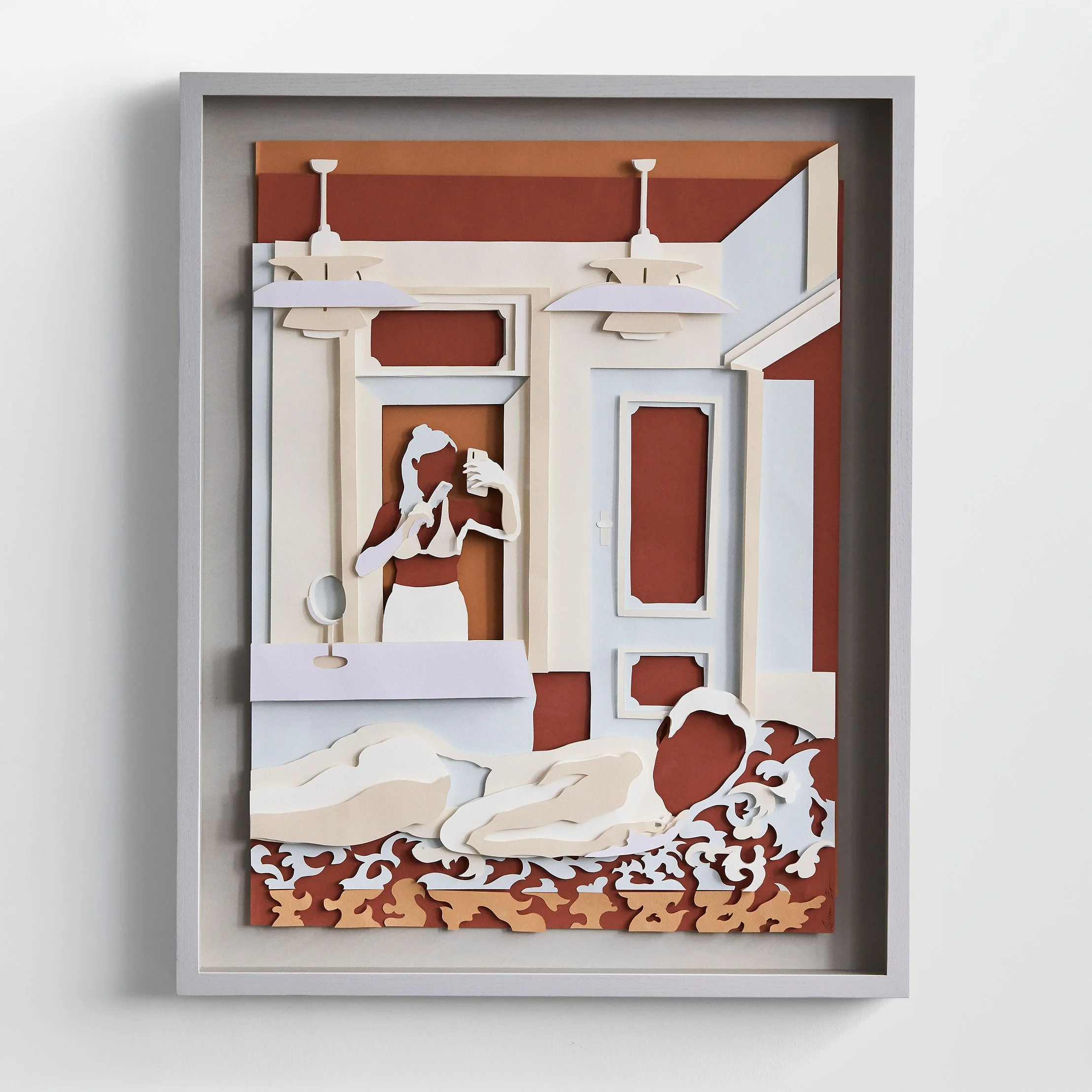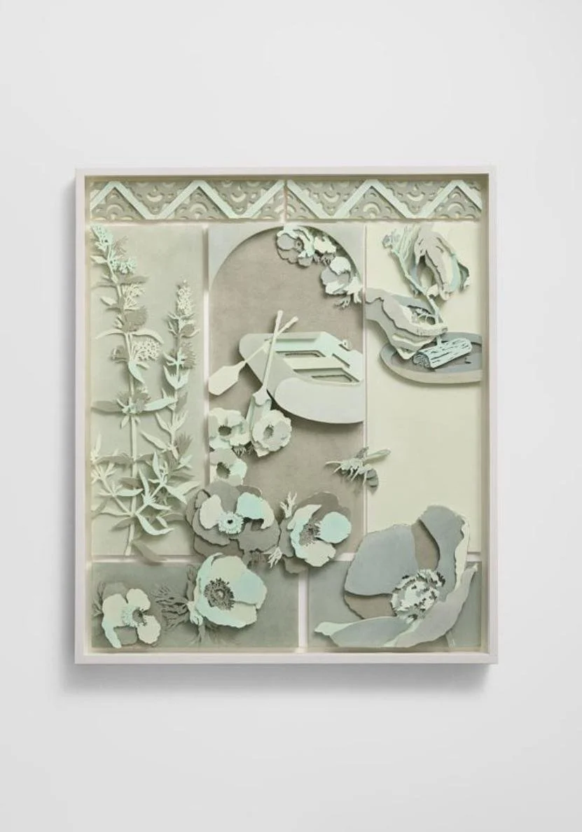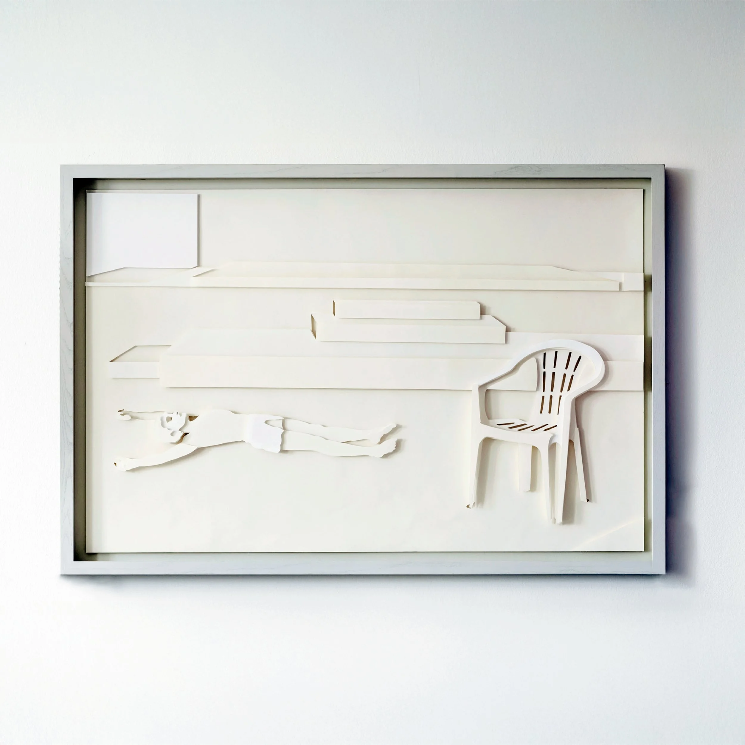Stinne Bo is a Danish contemporary artist whose refined paper reliefs blur the line between drawing and sculpture. Using hand-cut, layered paper as her primary medium, Bo creates poetic, dimensional works that explore themes of memory, nature, and the quiet power of the feminine. Each composition is a study in restraint—minimal in form, yet rich with texture, light, and symbolic resonance.